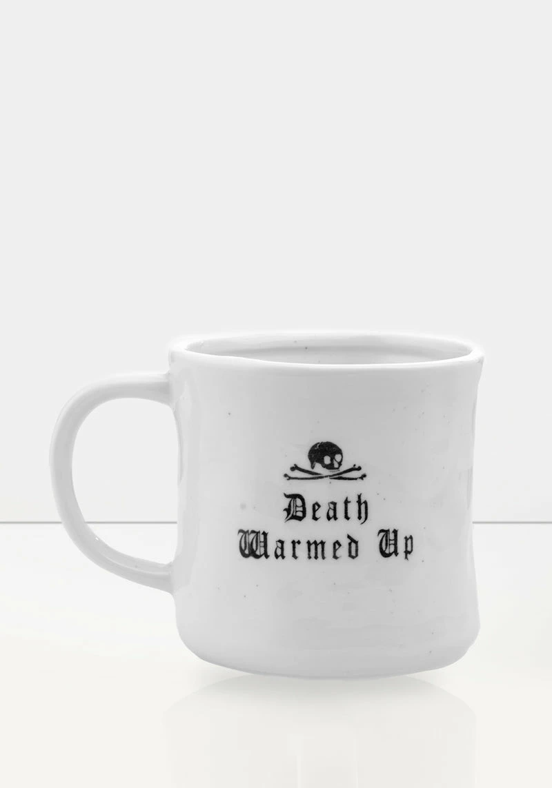 â§ Ash grey embossed Death Warmed Up design in gothic fontÂ