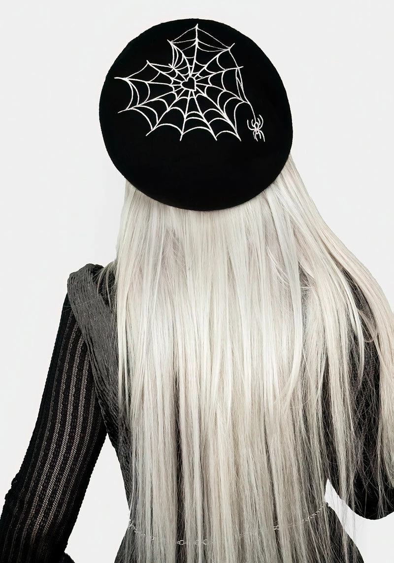 ✦ White heart-shaped spiderweb embroidery on crownÂ
