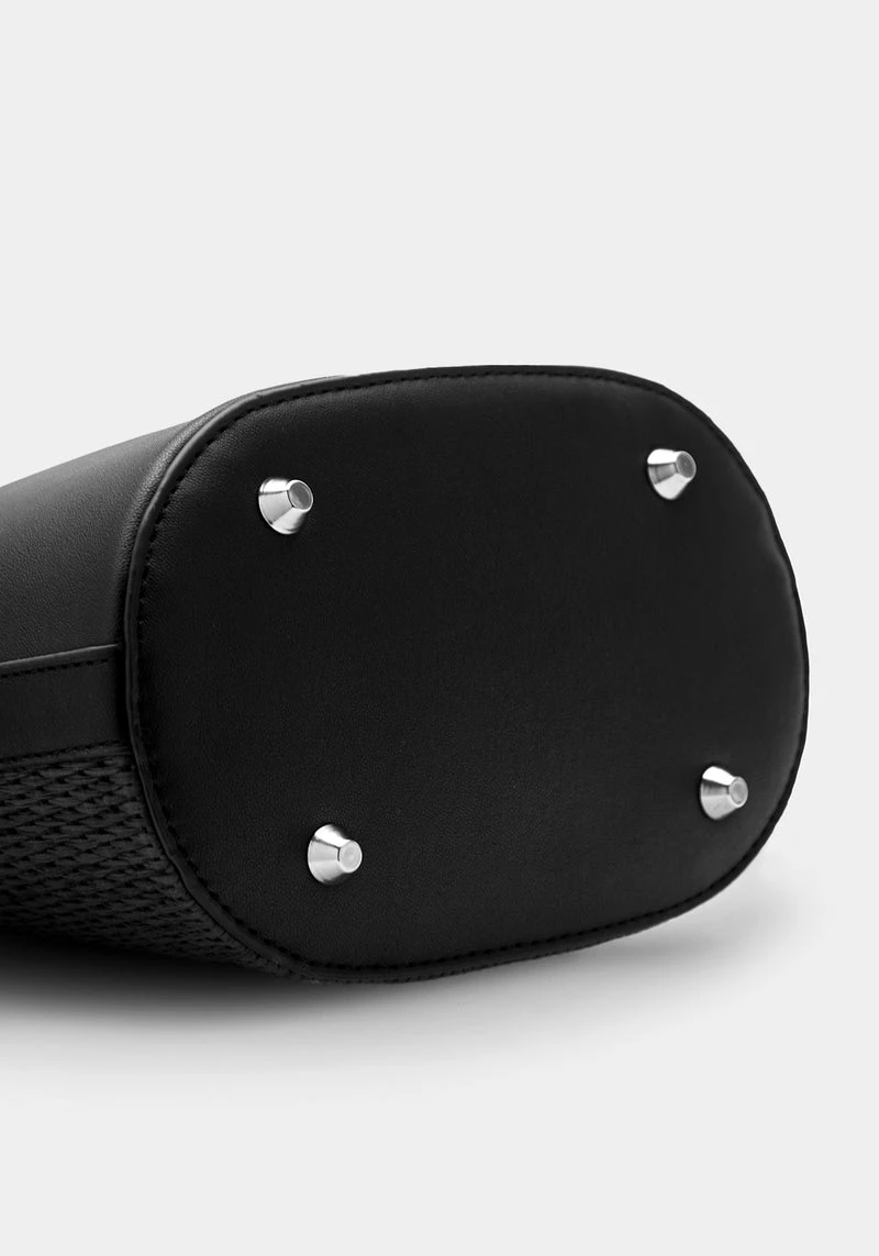 ✦ Black faux leather embroidered bucket bag  Â