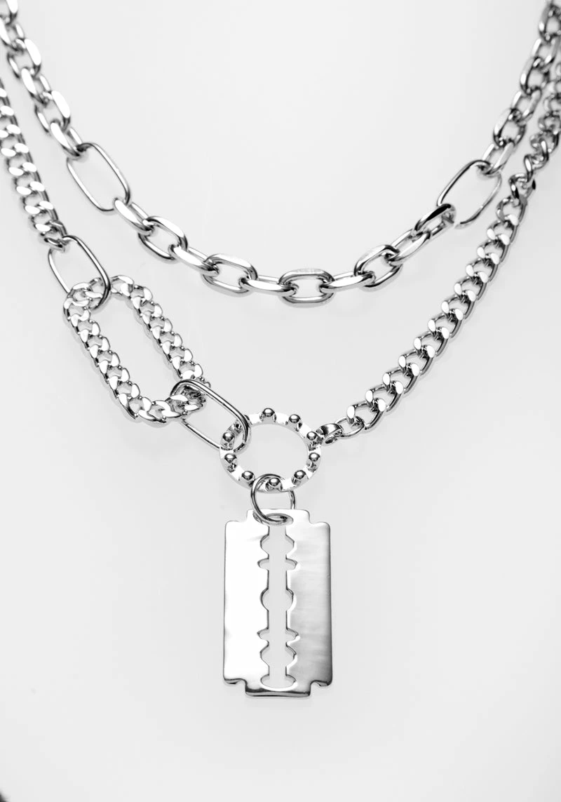 Never have your razor-sharp wit underestimated again with this handy reminder to anyone might forget exactly who they’re talking to. With a silver razor charm dangling from this chunky dual chain, enemies will know they need to keep their distance or face the consequences. (Don’t worry too much about people getting too close, though: as threatening as they look, these razor charms are still as blunt as your attitude.)Â