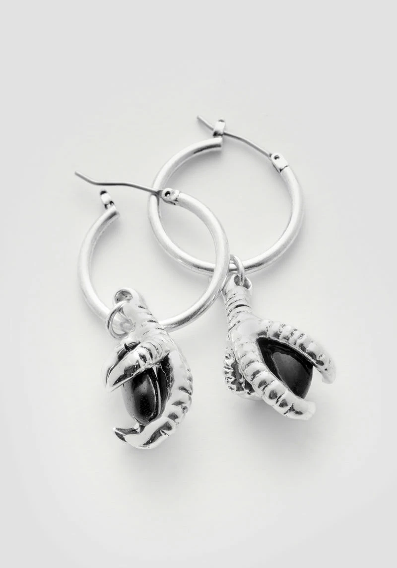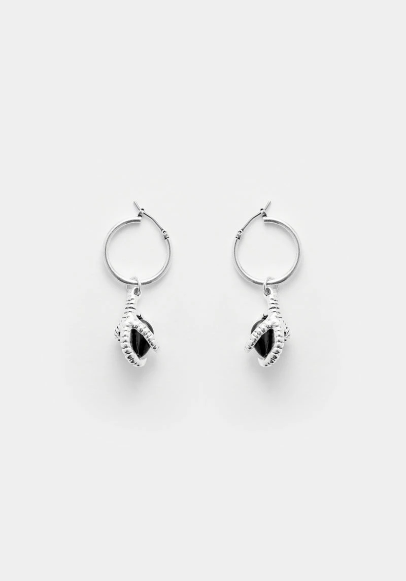 Don’t let the knights have all the fun: take up your sword and ready yourself for the quest of a lifetime. These black agate dragon egg charms set in silver-plated claws are yours to bear. Hang them from delicate earring hoops for protection and become the hero of your own legend.Â