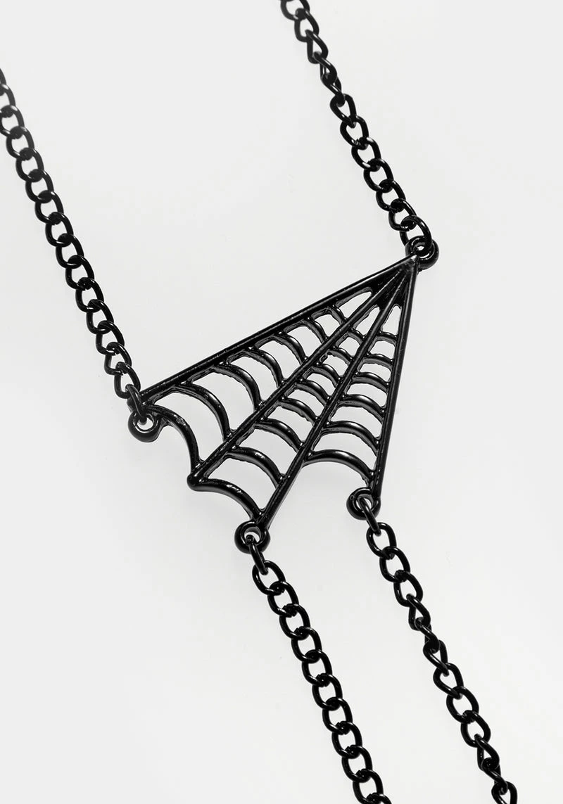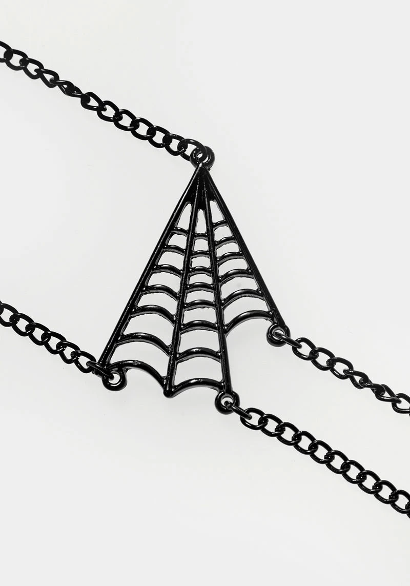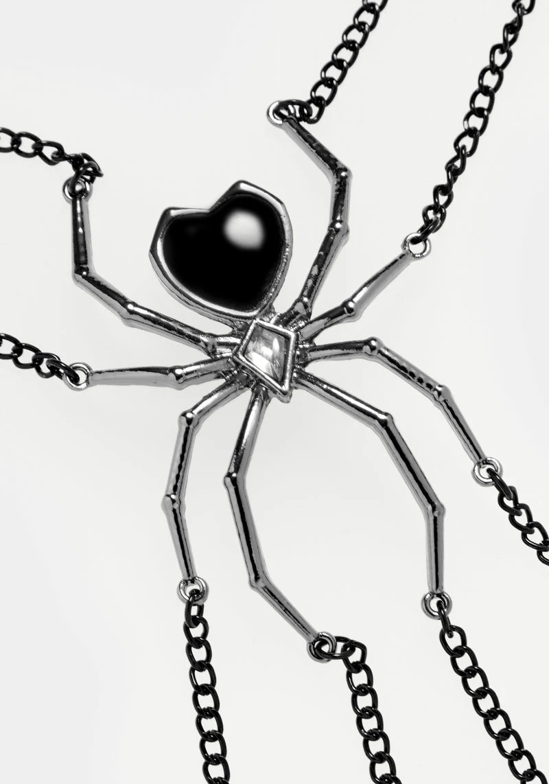 Feel the embrace of the Venom Body Chain: with lobster clasp fastenings at the neck and waist, this body chain envelops your shape with black chains to suspend a gunmetal spider charm at its centre. High-shine black enamel adorns this creepy-crawly’s abdomen to draw the eye to your heart. Wear over bodycon dresses to add glisten and charm, or drape over looser fits to add definition to your silhouette. Â