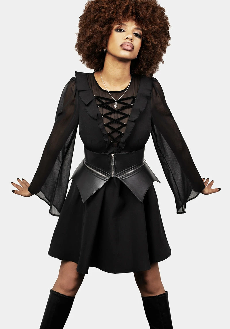 ✦ Accentuates full, flowing skirts – beauty with an edge
