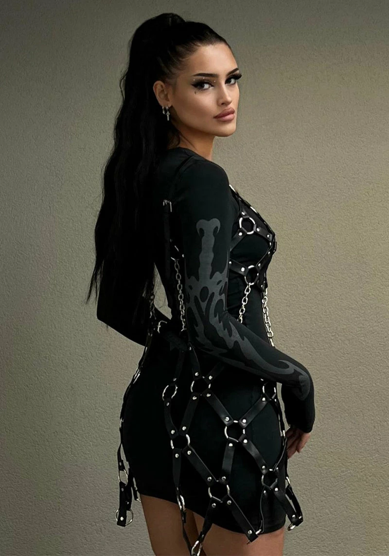 ✦ Faux leather dress harness with detachable skirt Â