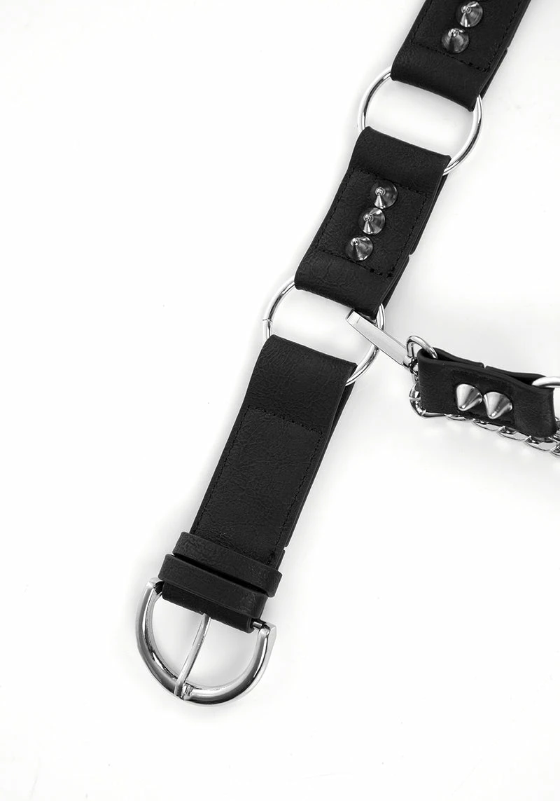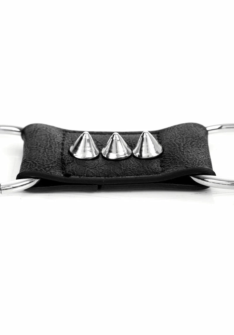 ✦ Faux leather strips linked with sturdy silver O-rings and studded embellishments  Â